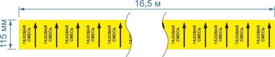 Опознавательная маркировочная лента желтая с черной надписью Газовая смесь и стрелкой 115мм x 16,5м