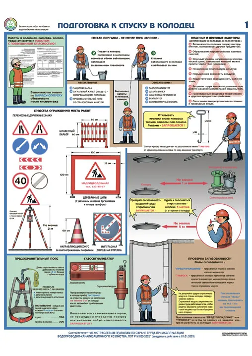Информационный плакат Безопасность работ на объектах водоснабжения и канализации PS-VIK-4 (лист №1) (420х600; Пленка самоклеящаяся ПВХ; )