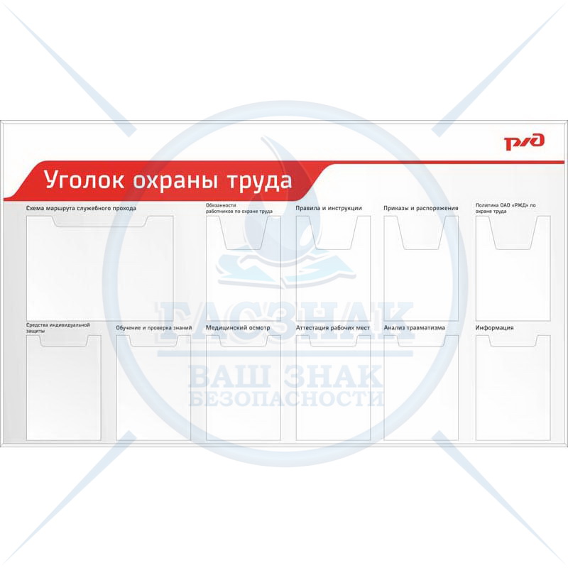 Стенды по охране труда для ОАО РЖД на пластике пвх с профилем NIELSEN, с 8 карманов А4 (Пластик ПВХ 4 мм; 1200х1000)