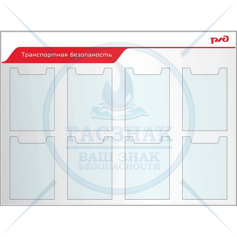 Стенды по охране труда для ОАО РЖД Охрана труда профиль Nielsen, 6 вертикальных карманов А4 (Пластик ПВХ 4 мм, алюминиевый профиль; 1000х1000)
