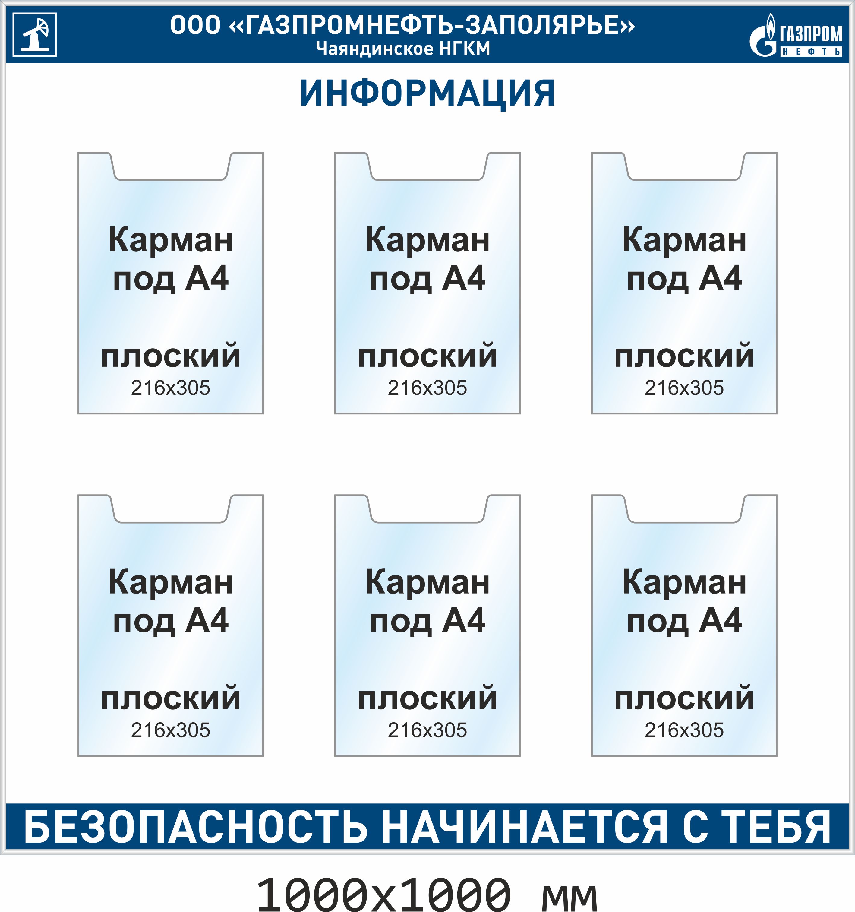 Стенд документации (4 кармана А4, 2 кармана А2), логотип (1400х1200; Пластик ПВХ 4 мм, алюминиевый профиль; )