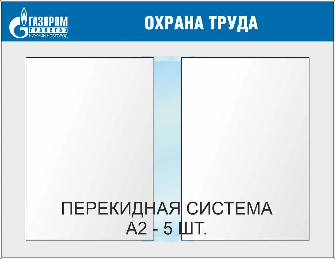 Стенд Охрана труда. Перекидная система А2х5шт., Логотип (1100х850; Пластик ПВХ 4 мм, пластиковый профиль; Пластиковый)