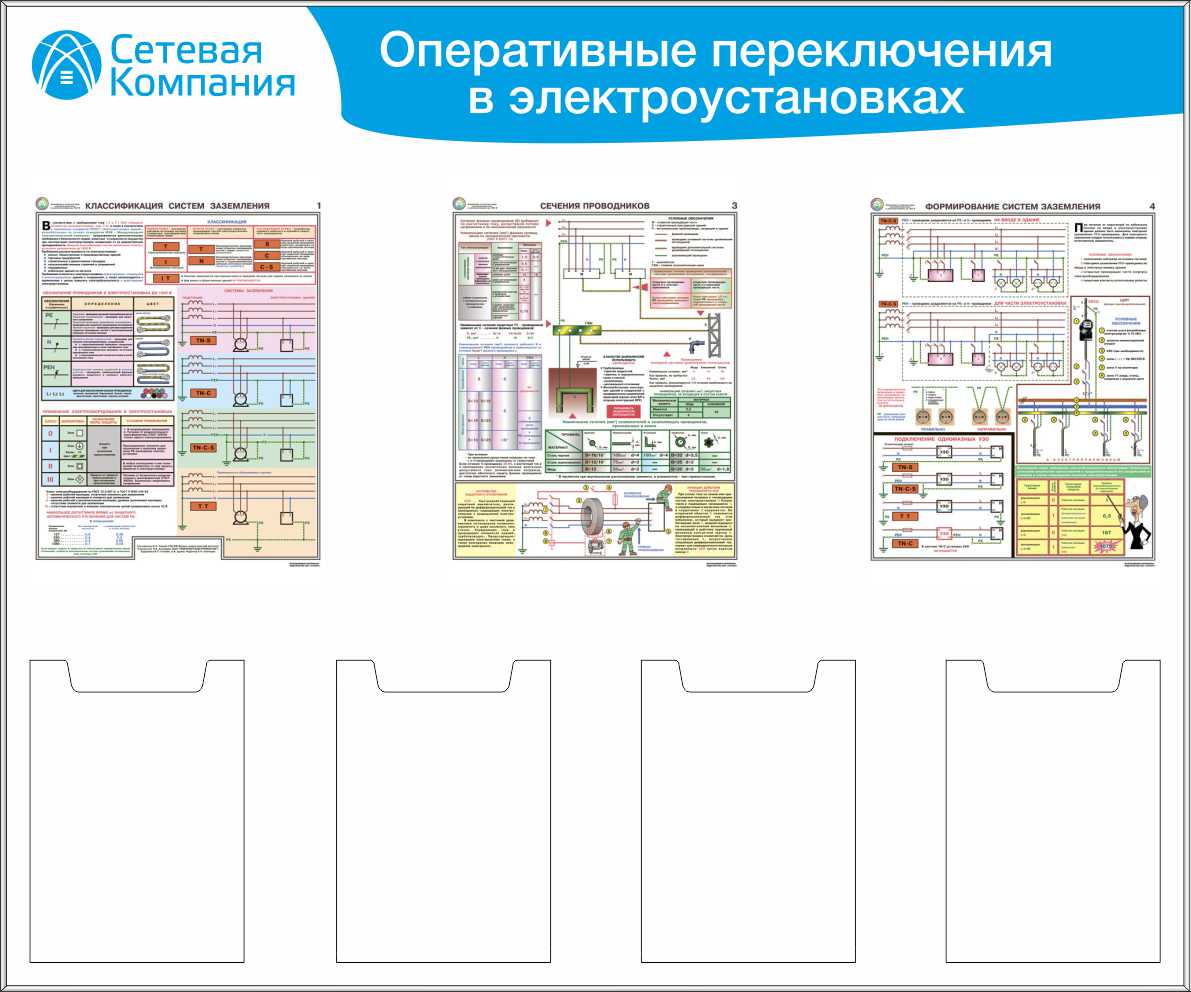 Стенд для ОТ оперативные переключения в электроустановках, 3 плаката А3, 4 карм. А4 (1 200х1 000; Пластик ПВХ 4 мм, Алюминиевый профиль)