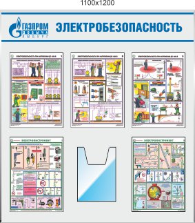 Стенд Электробезопасность 3 плаката А3, 2 кармана А4, 1 карман А5 (1000х1200; Пластик ПВХ 4 мм, пластиковый профиль; Пластиковый белый)