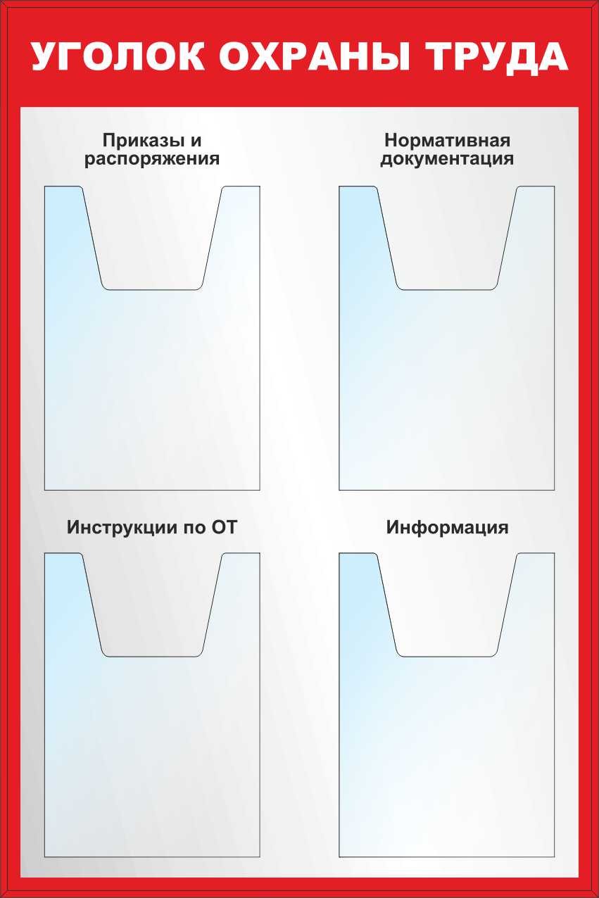 Стенд Уголок охраны труда, 4 объемных кармана А4 (1000х600; Пластик ПВХ 4 мм, алюминиевый профиль;)
